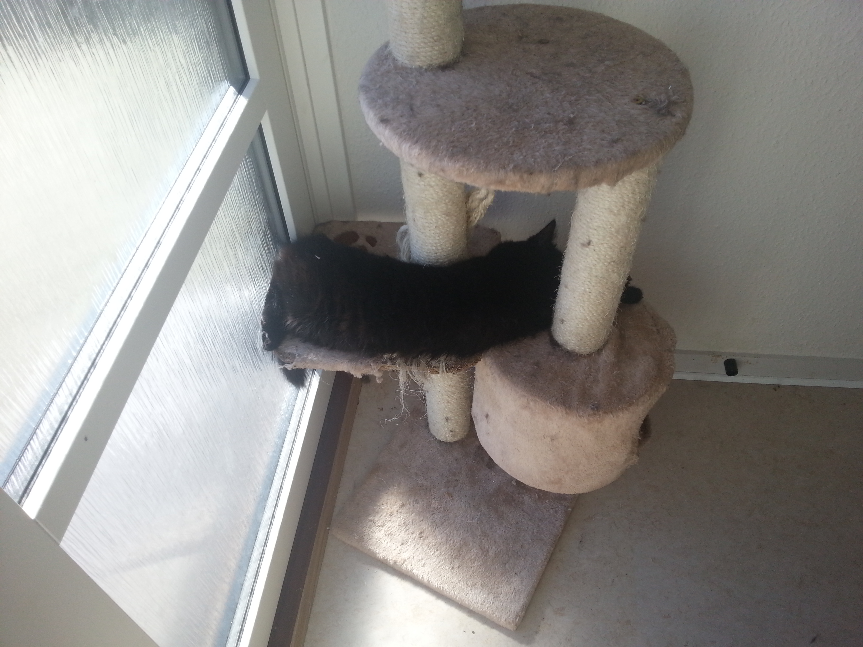 I dag startede det jo med sol igen og Ophelia skulle lige tage solbad morgensolen ind af den indgangsdør hvor klatrestativet står og hun lå totalt udstrakt.