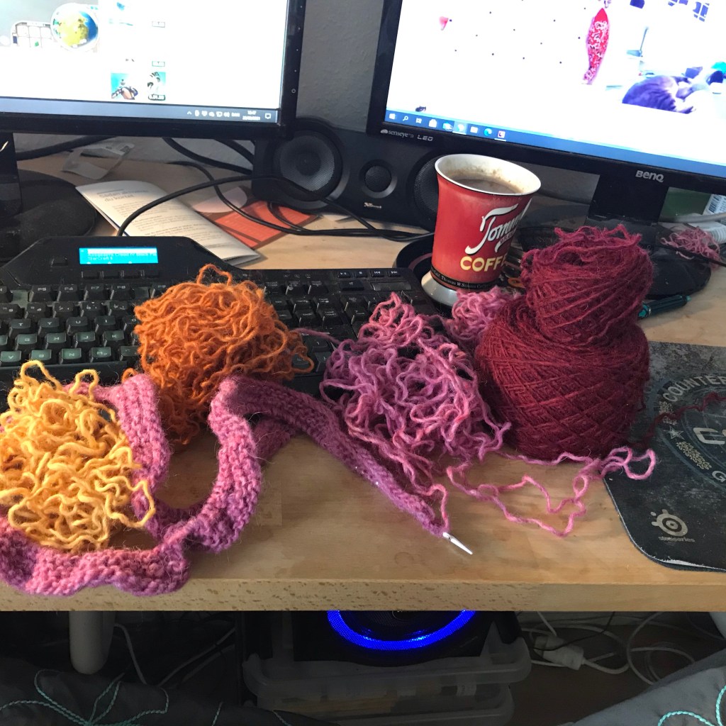 Tja idag er jeg igang med hvad jeg kalder surt show. Jeg er jo igang med at strikke en kofte fra den bog der hedder Islandsk strik, koften hedder Prydi og jeg var helt oppe i hvor jeg startede indtagninger i hoftedelen. Så imedens jeg strikkede kiggede jeg også strikkevlogs og så @skovstrik nyeste afsnit hvor hun bl.a snakkede om at klippe i strik og snakkede om at imellem de 2 vrangmasker man laver for at indikere klippestedet slår man 5 masker op så man kan hækle eller håndsy på hver side af klippestedet, og da jeg jo stadig ikke har klippet i strik valgte jeg at gå med den mulighed istedet for som der står i opskriften kun 2 vrangmasker, men det betyder så at min trøje nu ser sådan her ud